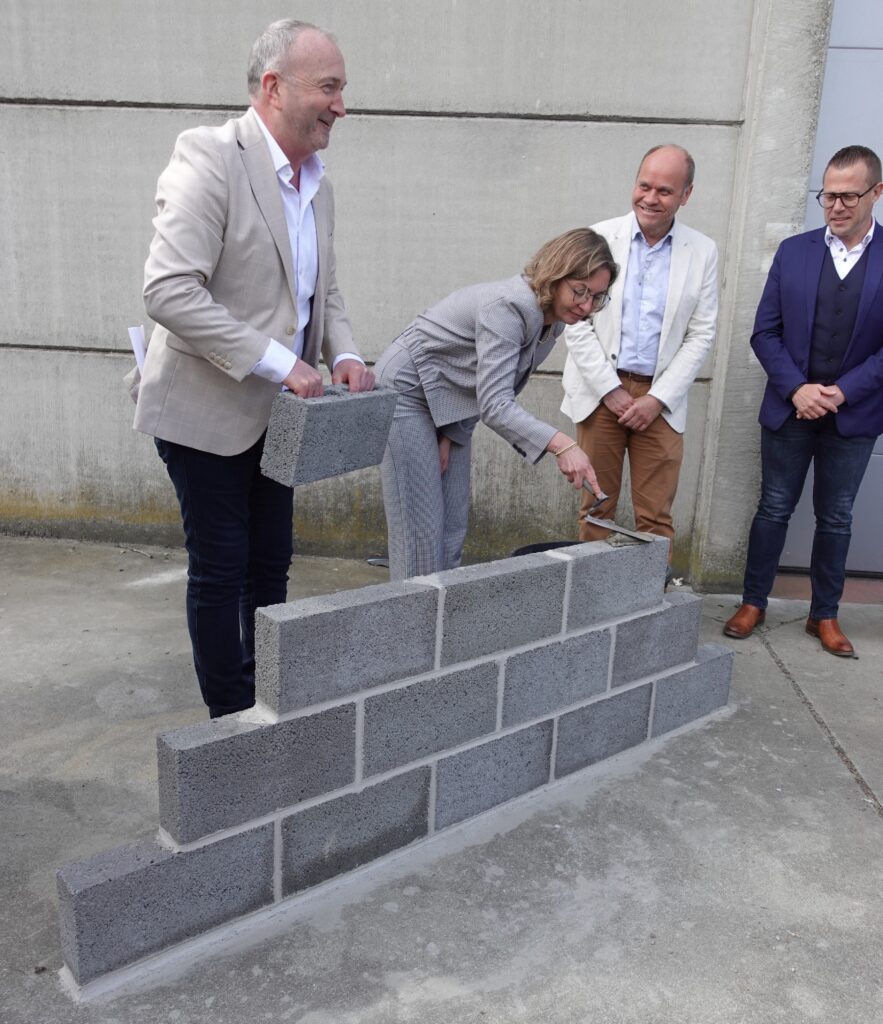 Meux (La Bruyère) – La Commune de La Bruyère, ECETIA et Wallonie Santé Finances ont officiellement donné ce jour le premier coup de pelle marquant le lancement du chantier de la future crèche de Meux.